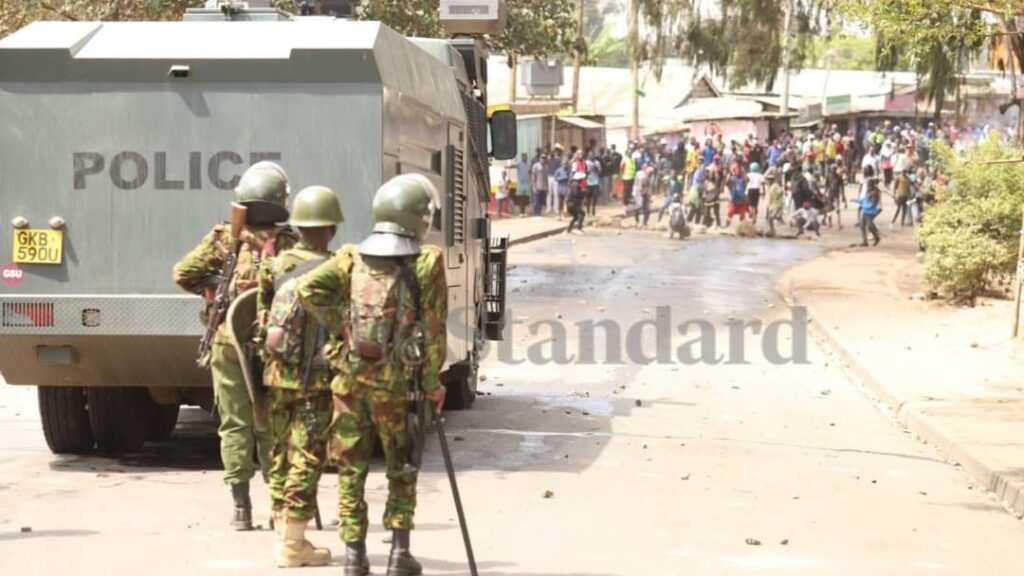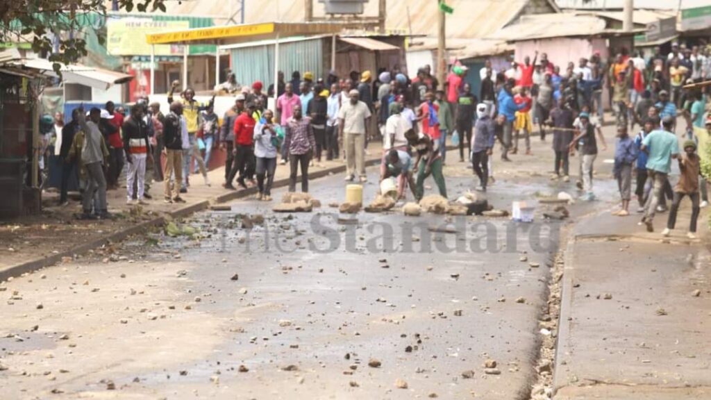 Police officers were this morning forced to use teargas on a section of rowdy Kibera residents who began their protests