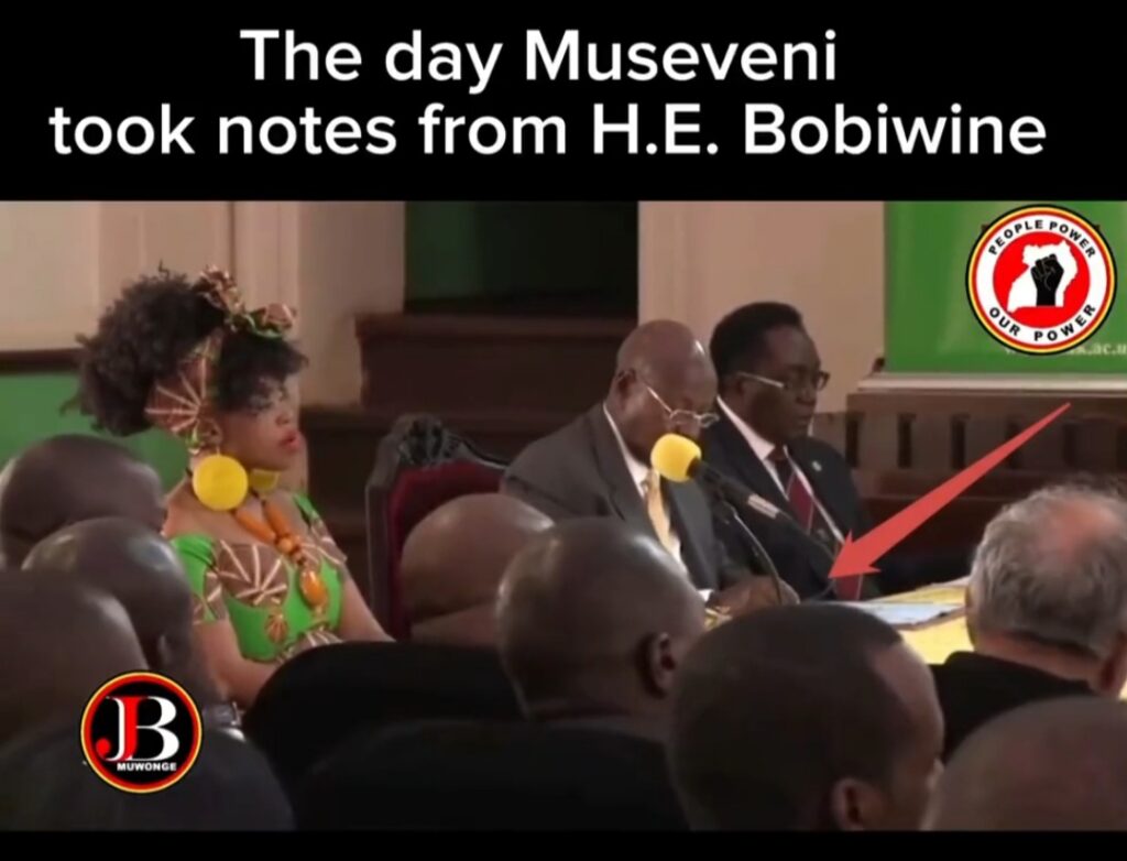 Museveni goes on to ask his aide de camp (ADC) to avail him with a notebook so he can sip from the cup of knowledge from Bobi Wine.